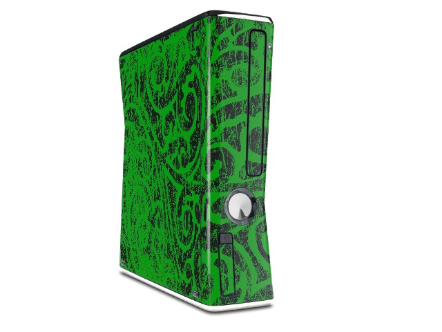 Folder Doodles Green Decal Style Skin for XBOX 360 Slim Vertical