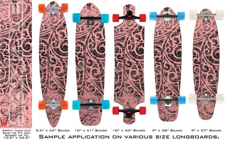 Our longboard skins are made so that one size fits boards up to 10” wide x 42” long. This means after applying the skin it you will trimming to fit you’re the shape of your board with a sharp utility knife.