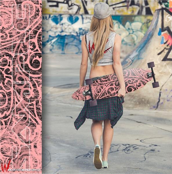 Folder Doodles Pink - Decal Style Vinyl Wrap Skin fits Longboard Skateboards up to 10"x42" (LONGBOARD NOT INCLUDED)