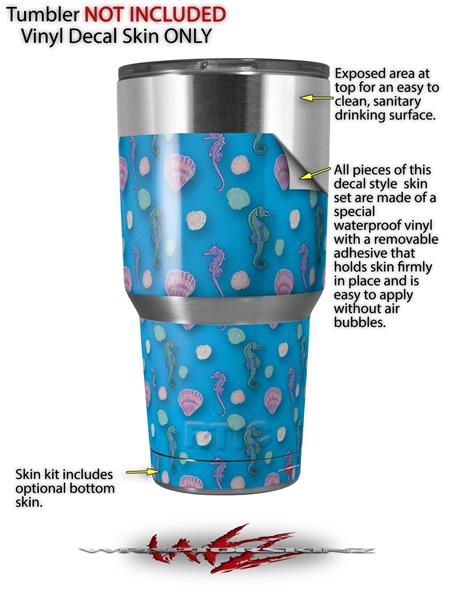 WraptorSkinz Skin Wrap compatible with RTIC 30oz ORIGINAL 2017 AND OLDER Tumblers Seahorses and Shells Blue Medium (TUMBLER NOT INCLUDED)