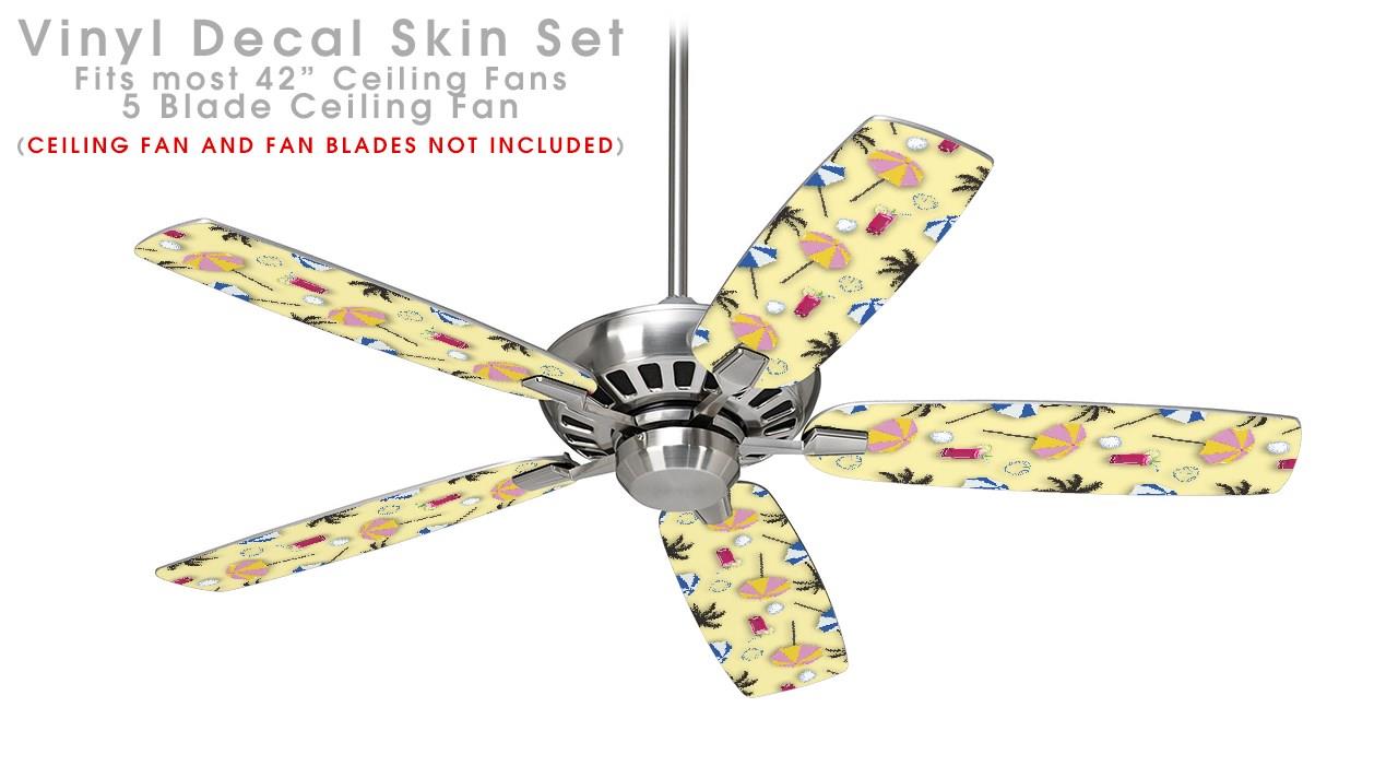 Beach Party Umbrellas Yellow Sunshine - Ceiling Fan Skin Kit fits most 42 inch fans (FAN and BLADES SOLD SEPARATELY)