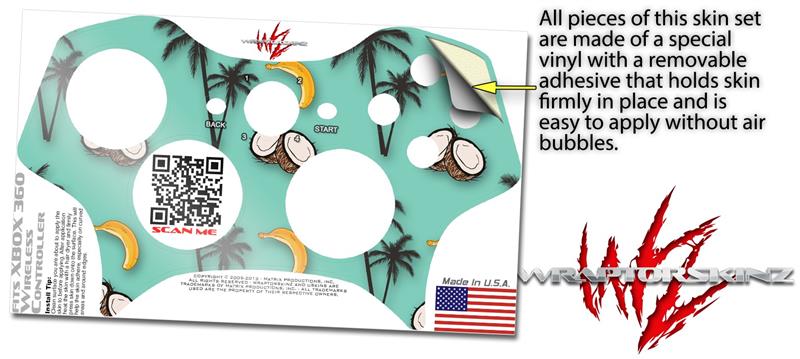 XBOX 360 Wireless Controller Decal Style Skin - Coconuts Palm Trees and Bananas Seafoam Green (CONTROLLER NOT INCLUDED)