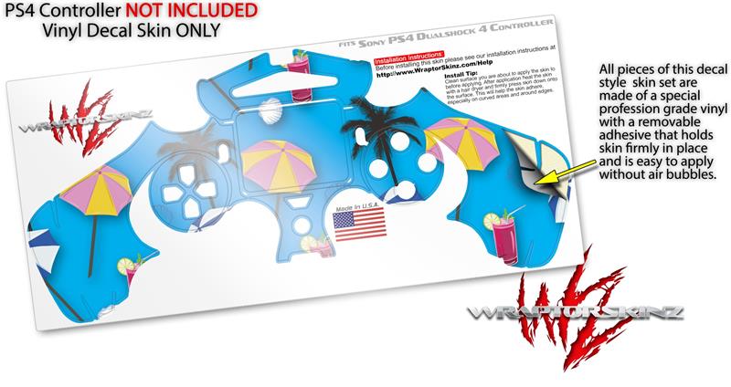 WraptorSkinz Skin compatible with Sony PS4 Dualshock Controller PlayStation 4 Original Slim and Pro Beach Party Umbrellas Blue Medium (CONTROLLER NOT INCLUDED)