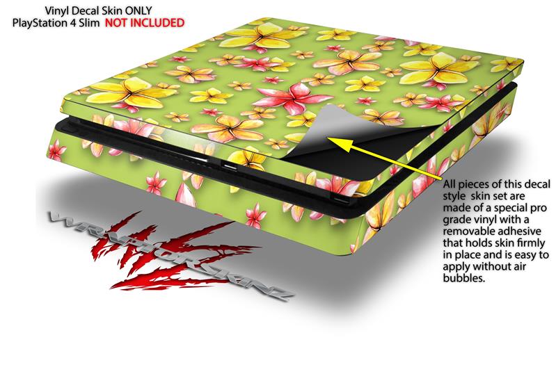 Vinyl Decal Skin Wrap compatible with Sony PlayStation 4 Slim Console Beach Flowers Sage Green (PS4 NOT INCLUDED)
