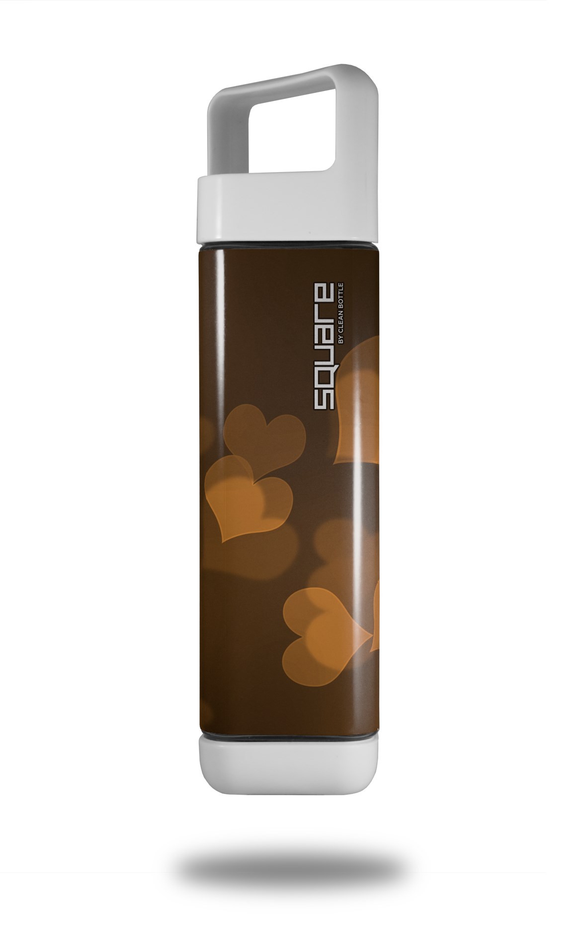 Skin Decal Wrap for Clean Bottle Square Titan Plastic 25oz Bokeh Hearts Orange (BOTTLE NOT INCLUDED)