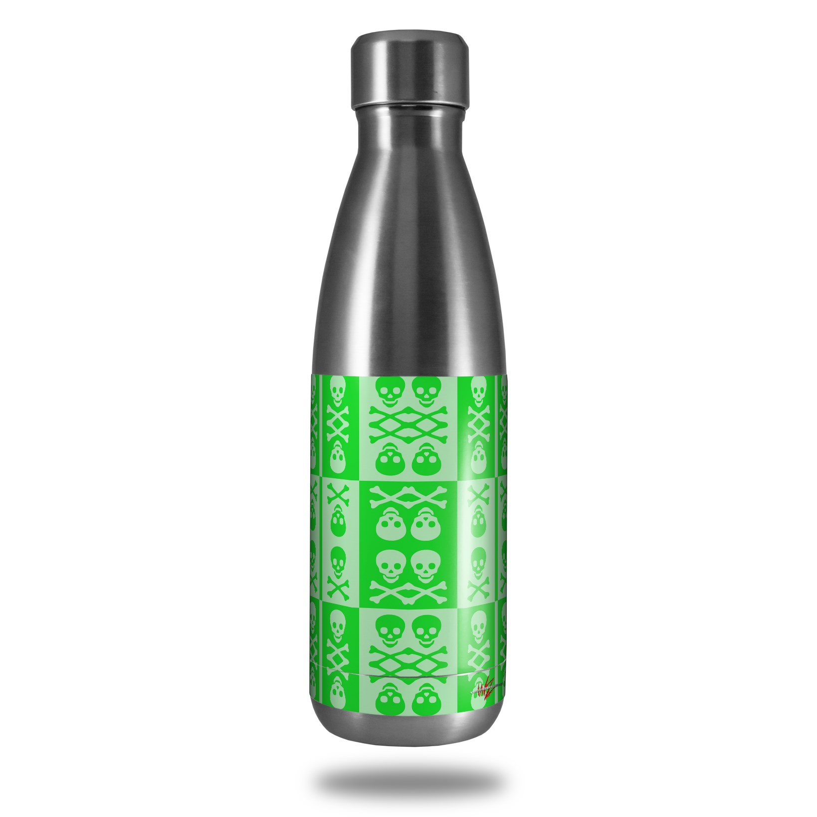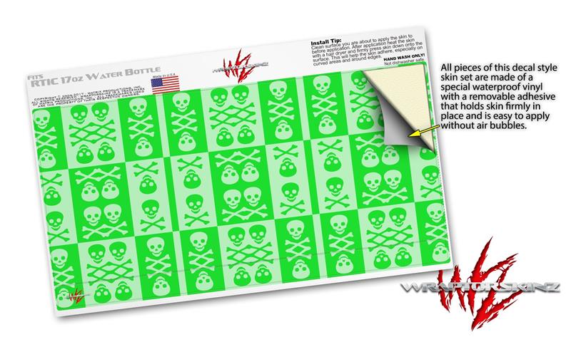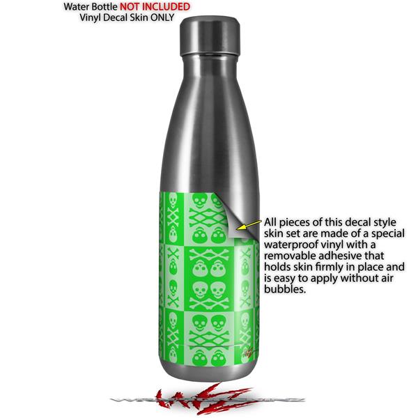 Skin Decal Wrap for RTIC Water Bottle 17oz Skull And Crossbones Pattern Green (BOTTLE NOT INCLUDED)