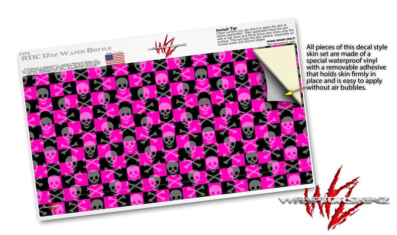 Skin Decal Wrap for RTIC Water Bottle 17oz Skull and Crossbones Checkerboard (BOTTLE NOT INCLUDED)