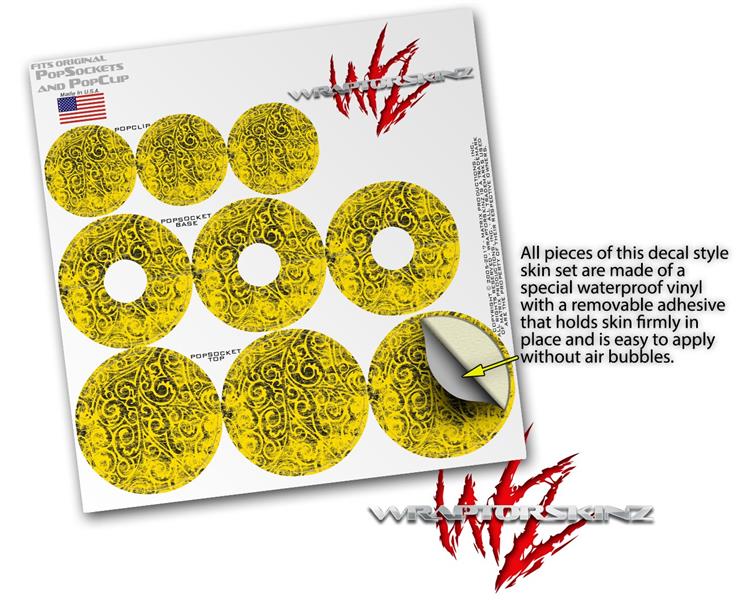 Decal Style Vinyl Skin Wrap 3 Pack for PopSockets Folder Doodles Yellow (POPSOCKET NOT INCLUDED)