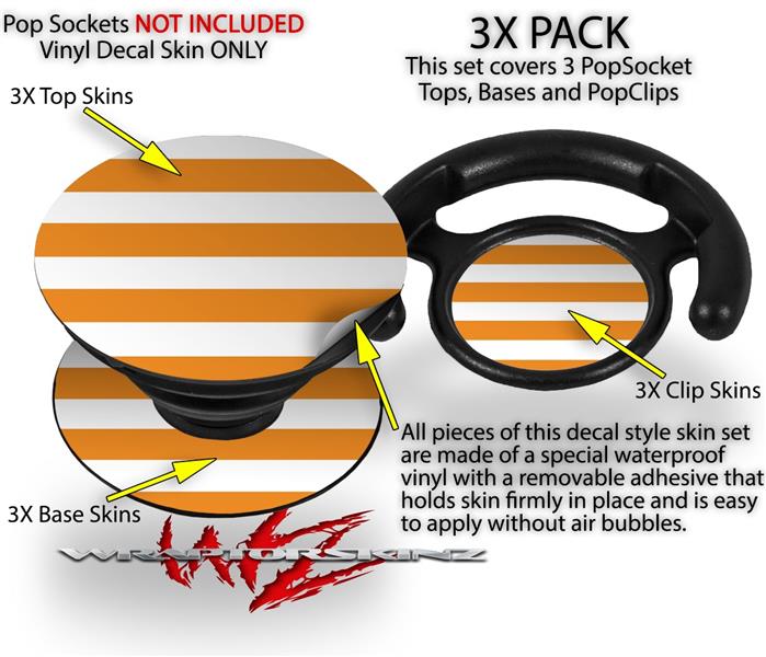 Decal Style Vinyl Skin Wrap 3 Pack for PopSockets Psycho Stripes Orange and White (POPSOCKET NOT INCLUDED)
